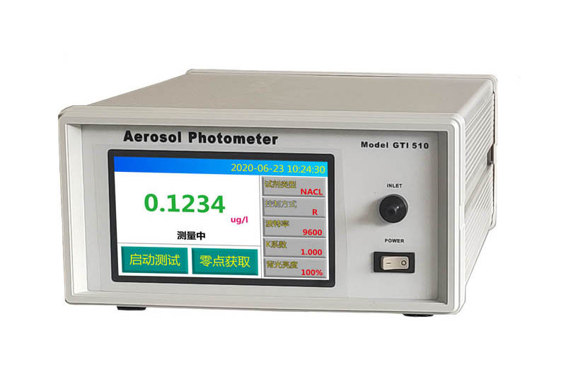 GTI510气溶胶光度计传感器,为口罩质量认证及滤料过滤效率测试而定制设计研发的高精度、高性能产品。试剂可选用PAO或NaCl,以μg/L实时显示测试环境的质量浓度。